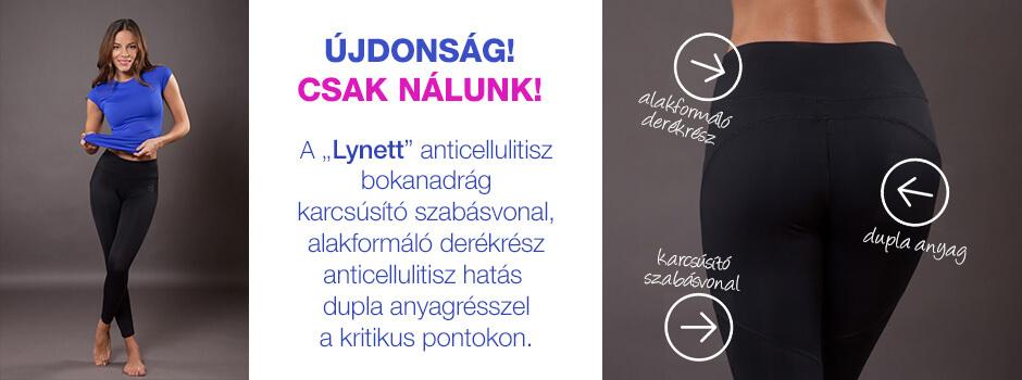 A Lynett alakformáló bokanadrág anticellulitisz hatású. Titka, hogy a női test legkritikusabb részein (has, popsi, fenék alatti banánvonal, combok) dupla anyagréteggel van ellátva, így teljesen elfedi az egyenetlenségeket. Széles, magasított gumírozott derékrésze stabil tartást és lapos hasat biztosít.